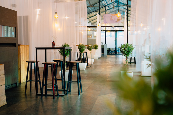 Naast de vier zalen kunnen de gasten ook genieten van het ponton, het terras en de ruime binnenkoer.